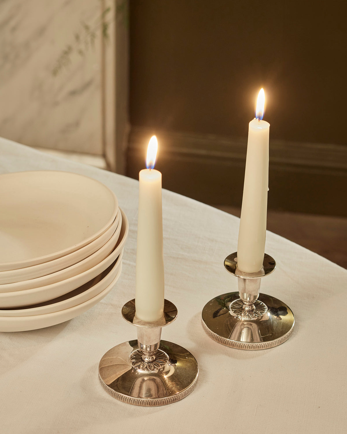 A pair of Silver Swedish candlesticks with acanthus detailing to the perimeter of the base and a floral motif supporting the stem. Gothenburg, Sweden 1967. Embossed to the base with hallmarks.