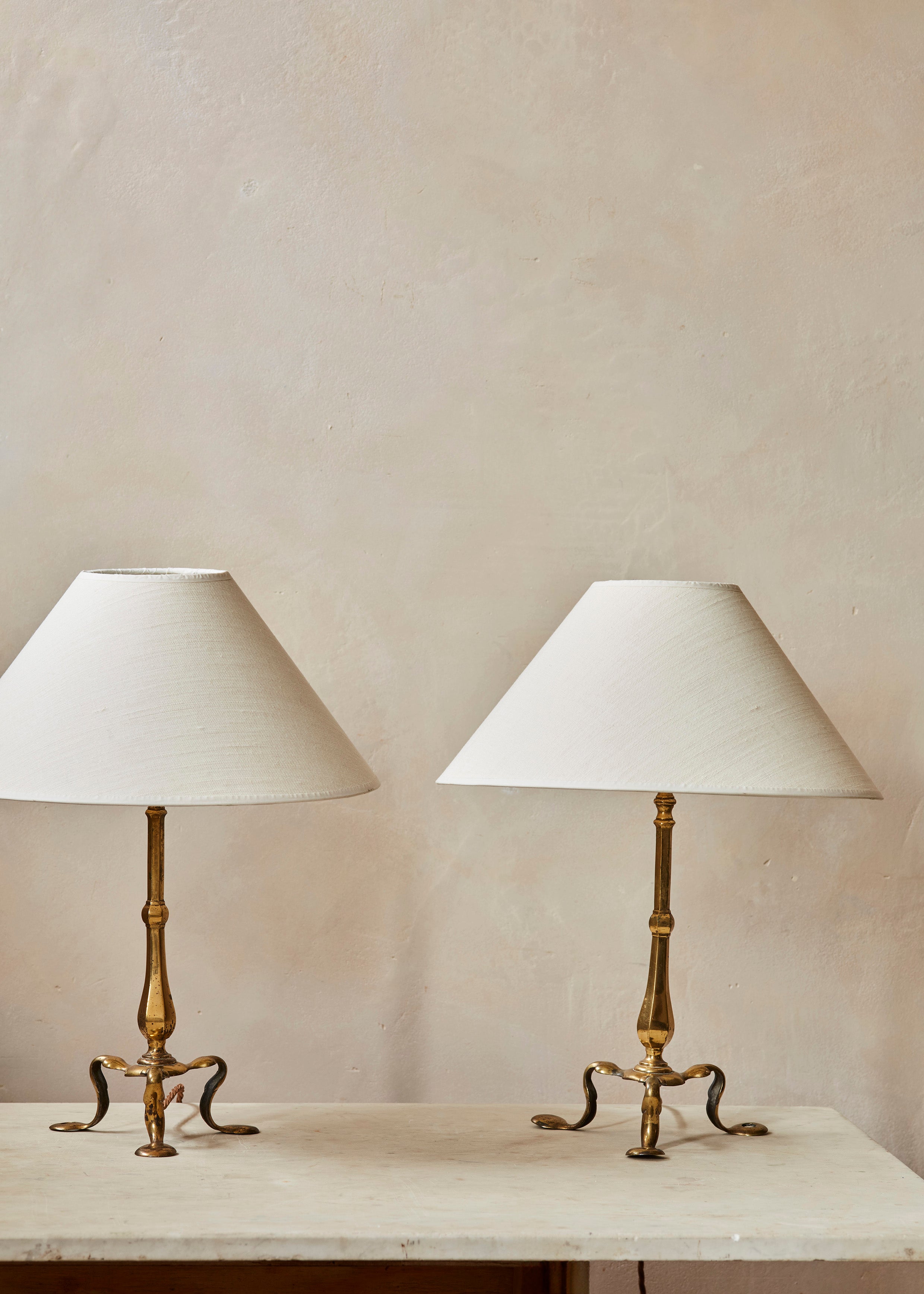 A pair of original brass Arts and Crafts lamps from Pullman railway carriages. Beautifully crafted with warm patina and simple, elegant lines—an authentic piece of early 20th-century design. Price is for the pair - lampshades not included but can be ordered if required for an additional cost.