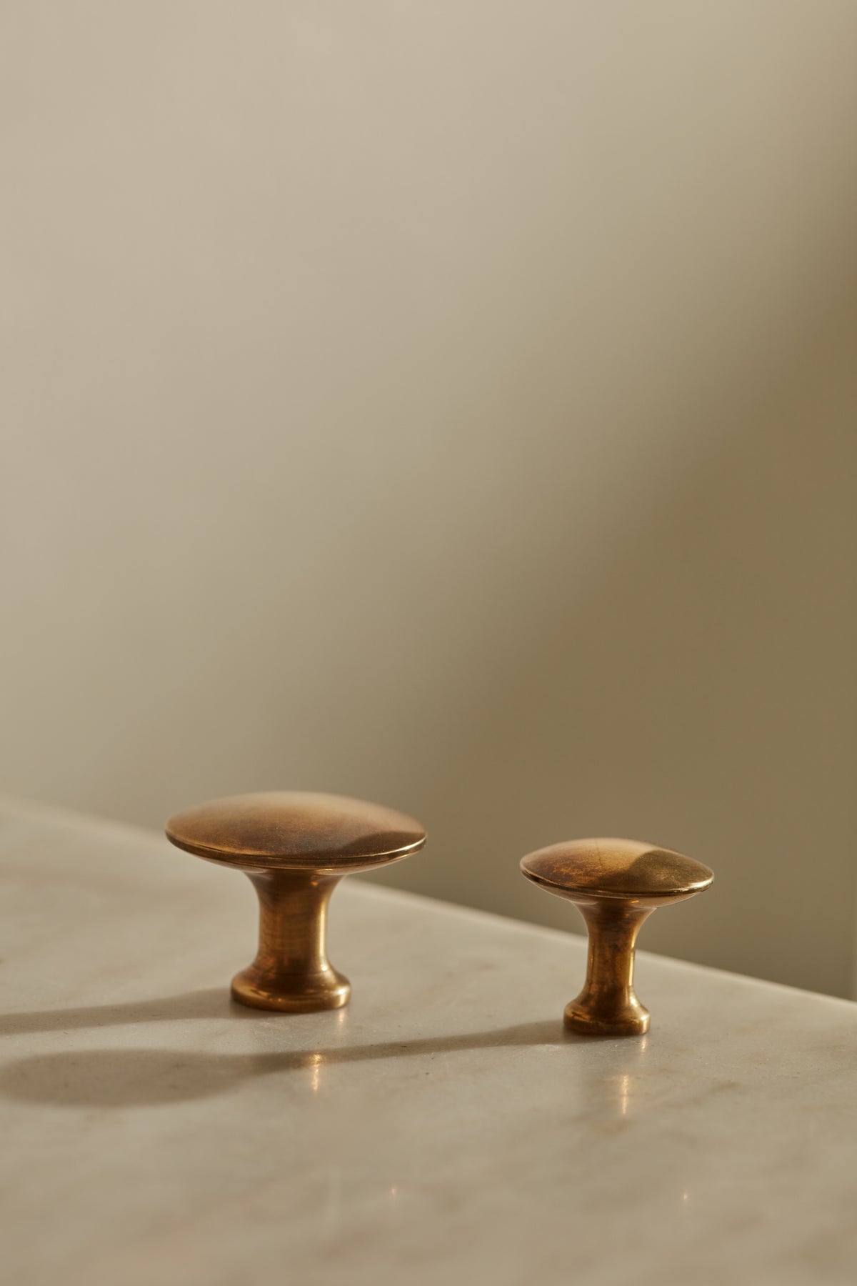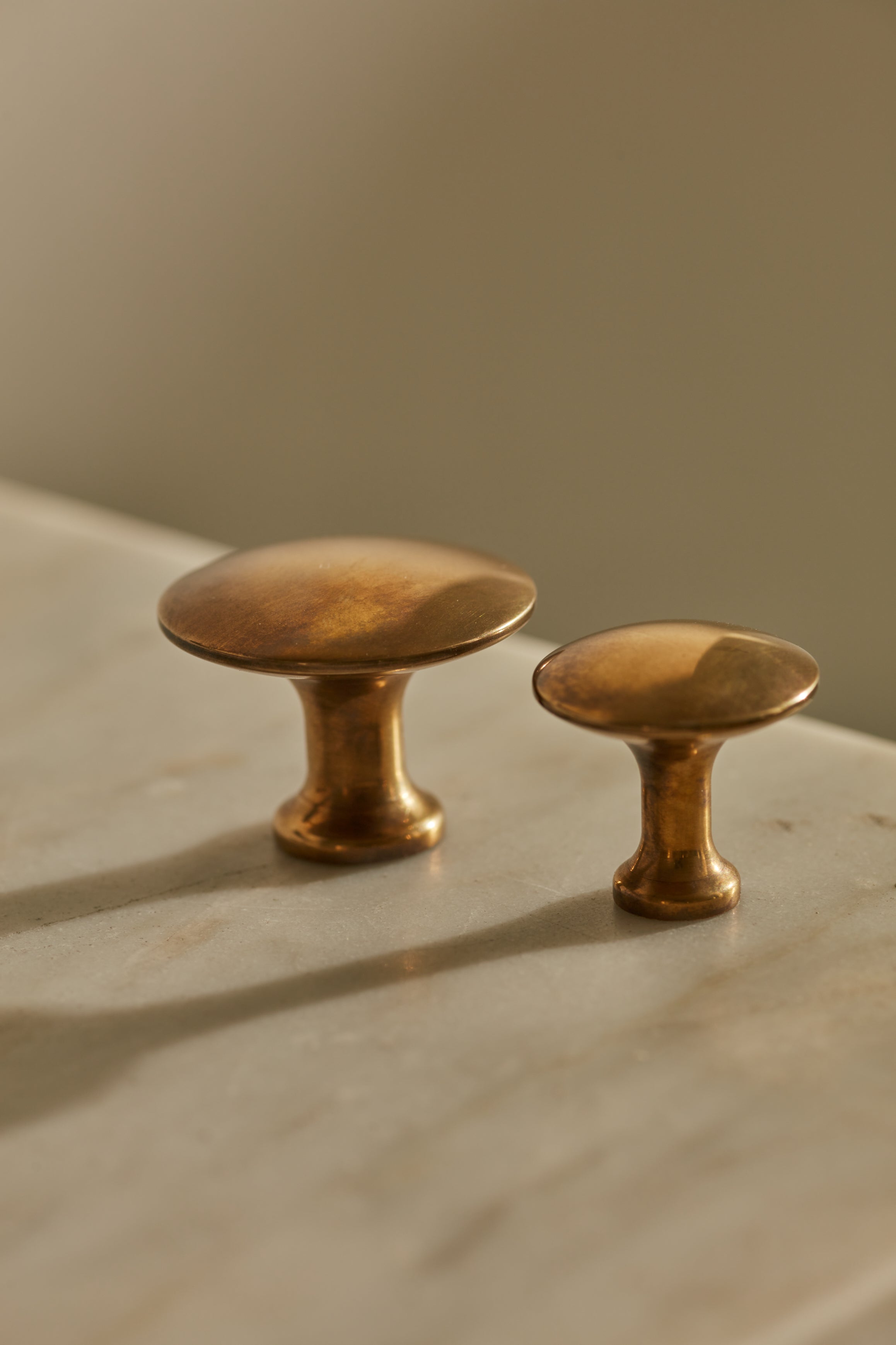Quietly refined, our Belton knobs are turned in solid brass and finished by hand by artisans in a Sussex workshop. The gently domed face feels timeless and unobtrusive whilst the surface carries the subtle marks of hand finishing offering discreet warmth, depth and a quiet not to traditional metalwork. The simplicity of form is deliberate and designed to deliver a paired back and practical solution to everyday joinery – appropriate for regular use as well as offering suitable solutions in both traditional and contemporary settings.