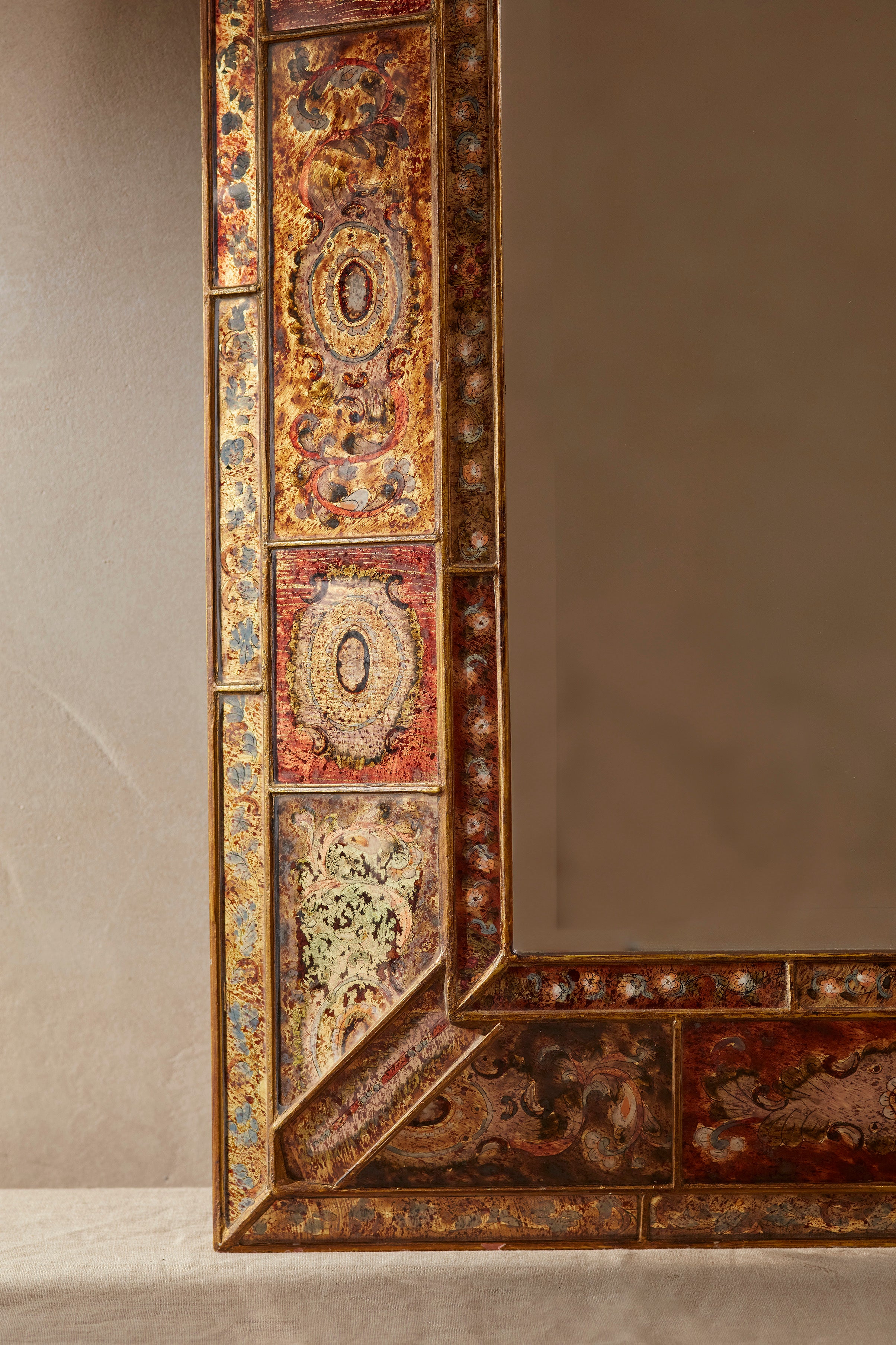 An unusual 20th Century mirror with a back-painted glass frame. Likely Venetian.