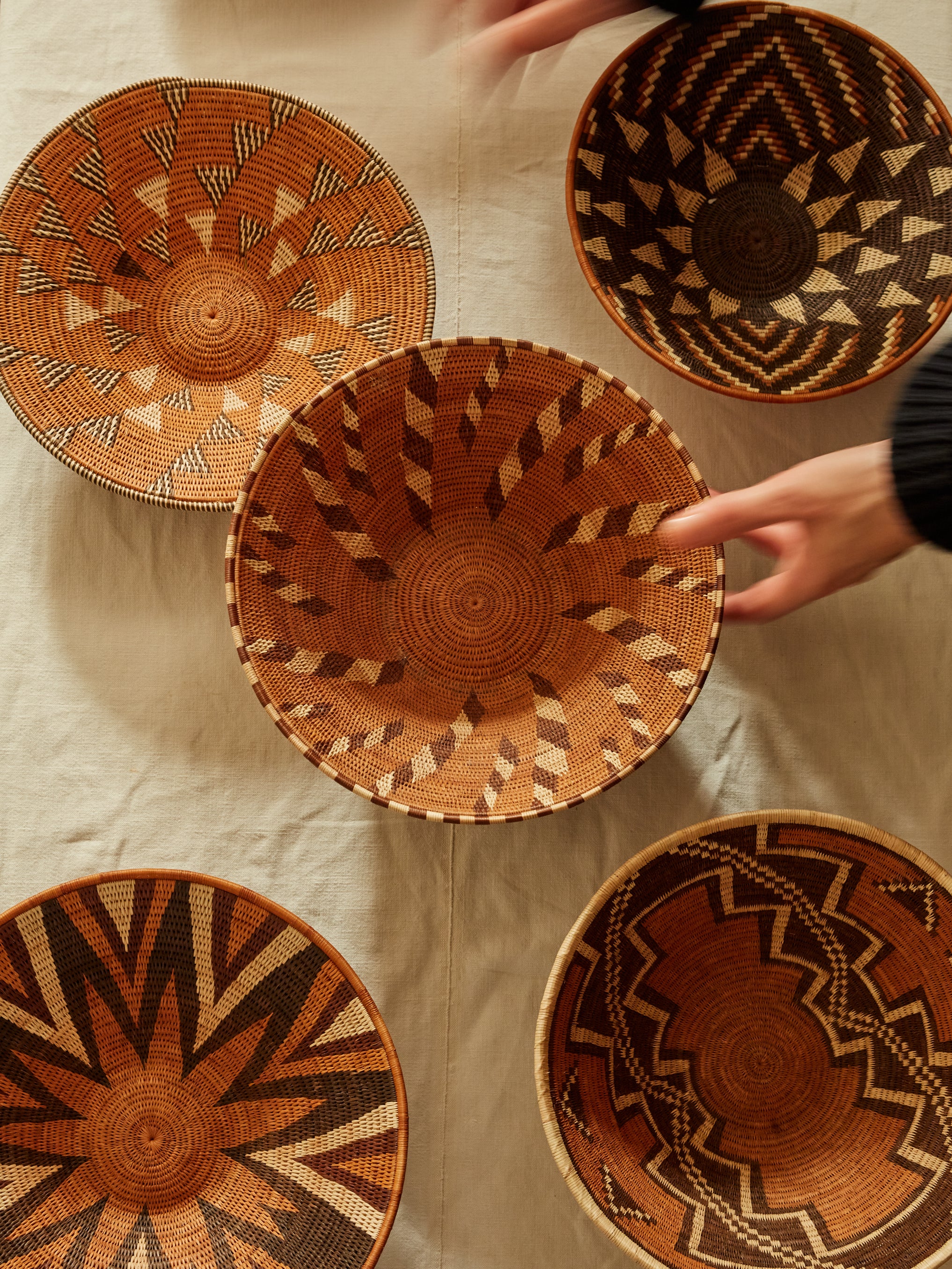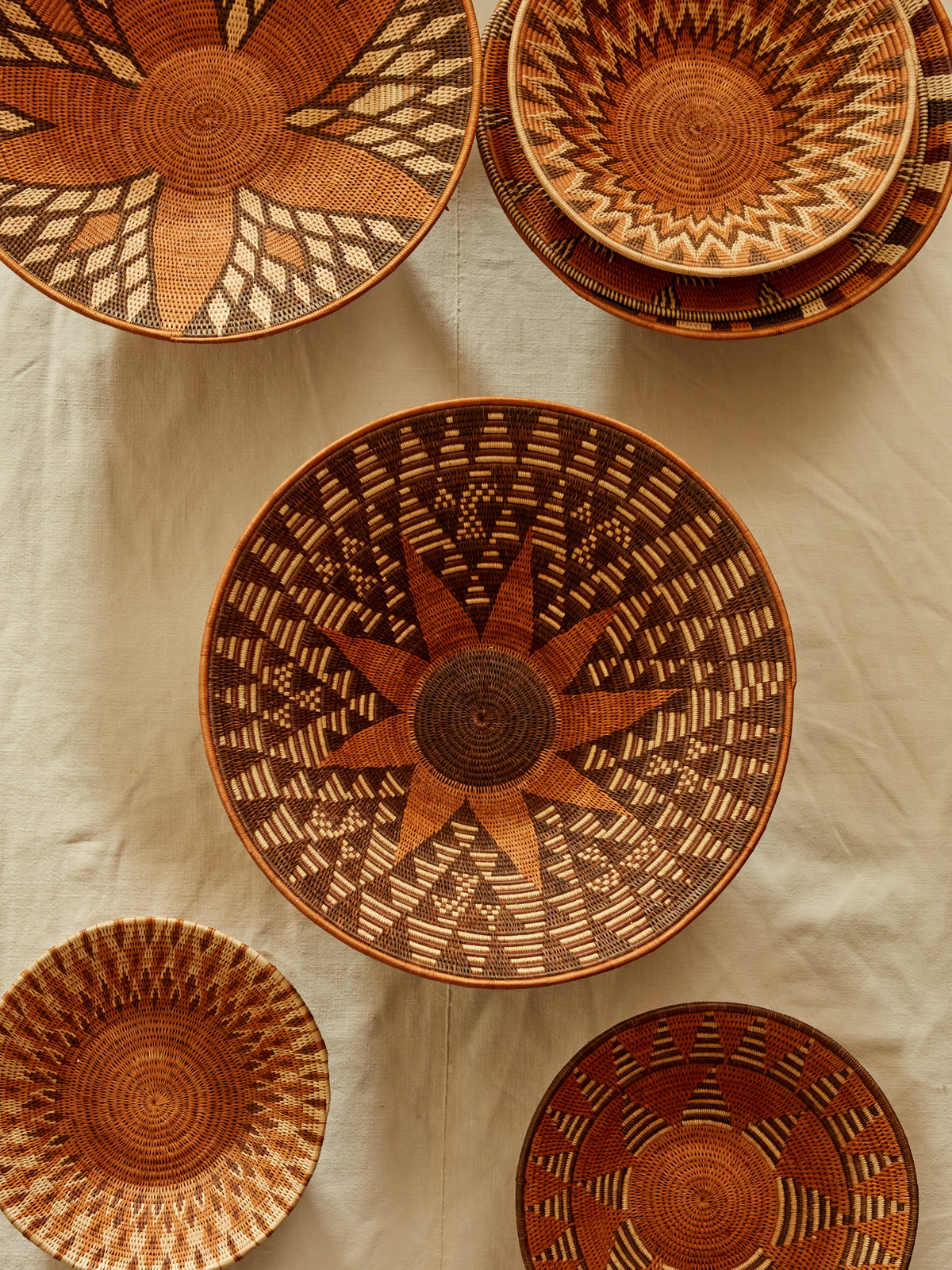 A great selection of hand woven Kenyan bowls. Available in a variety of size and patterns; please see codes on images for reference.