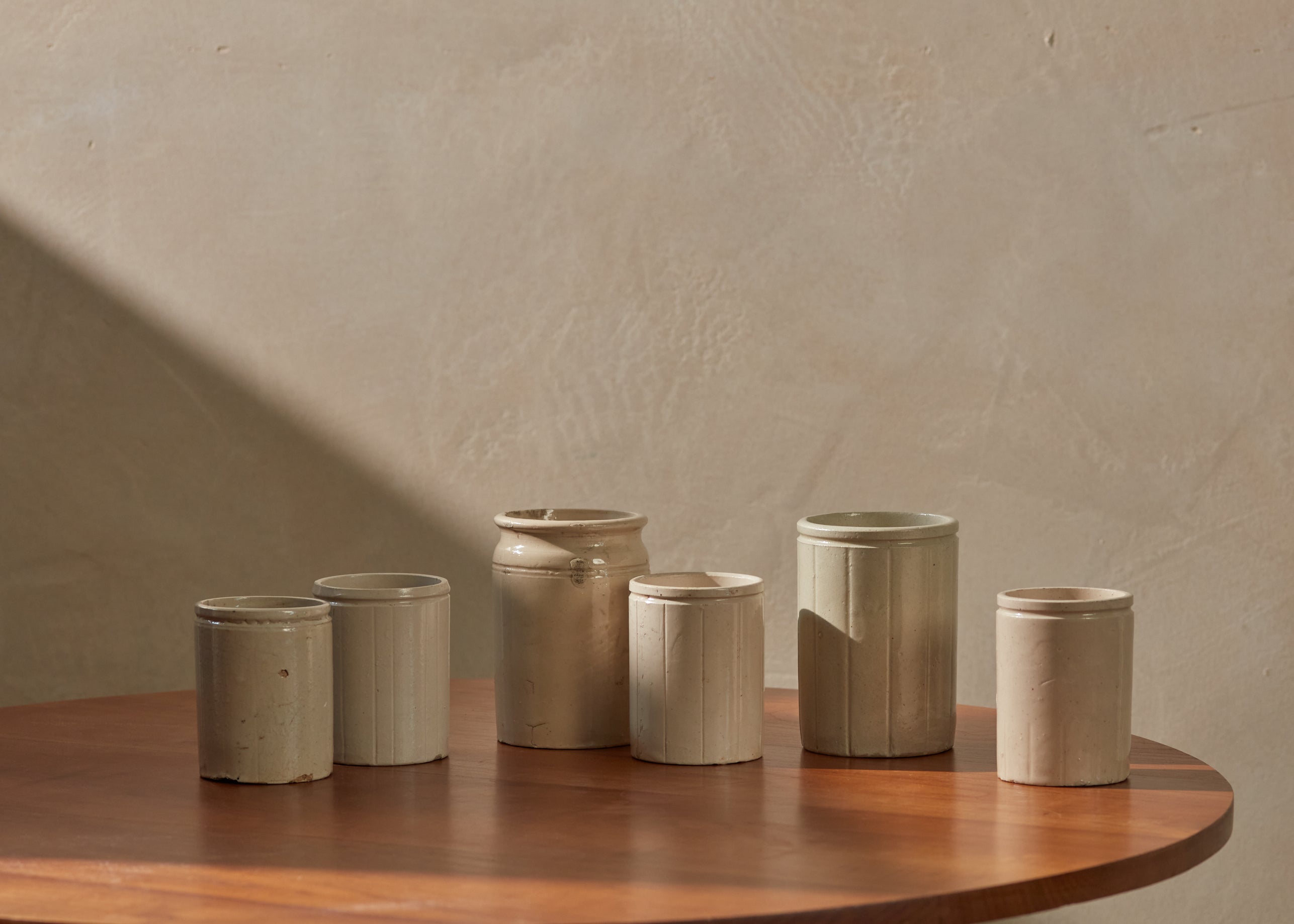A selection of Victorian, stoneware pots. Perfect for utensils, small arrangements or cutlery.